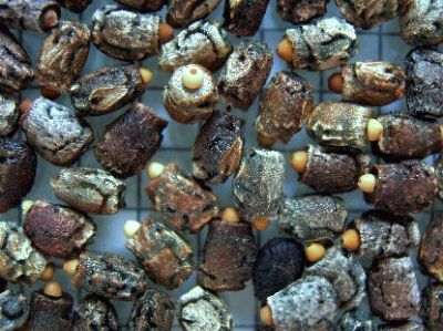 rasterelektronenmikroskopischen Aufnahmen viele Phasmideneier mit ihren